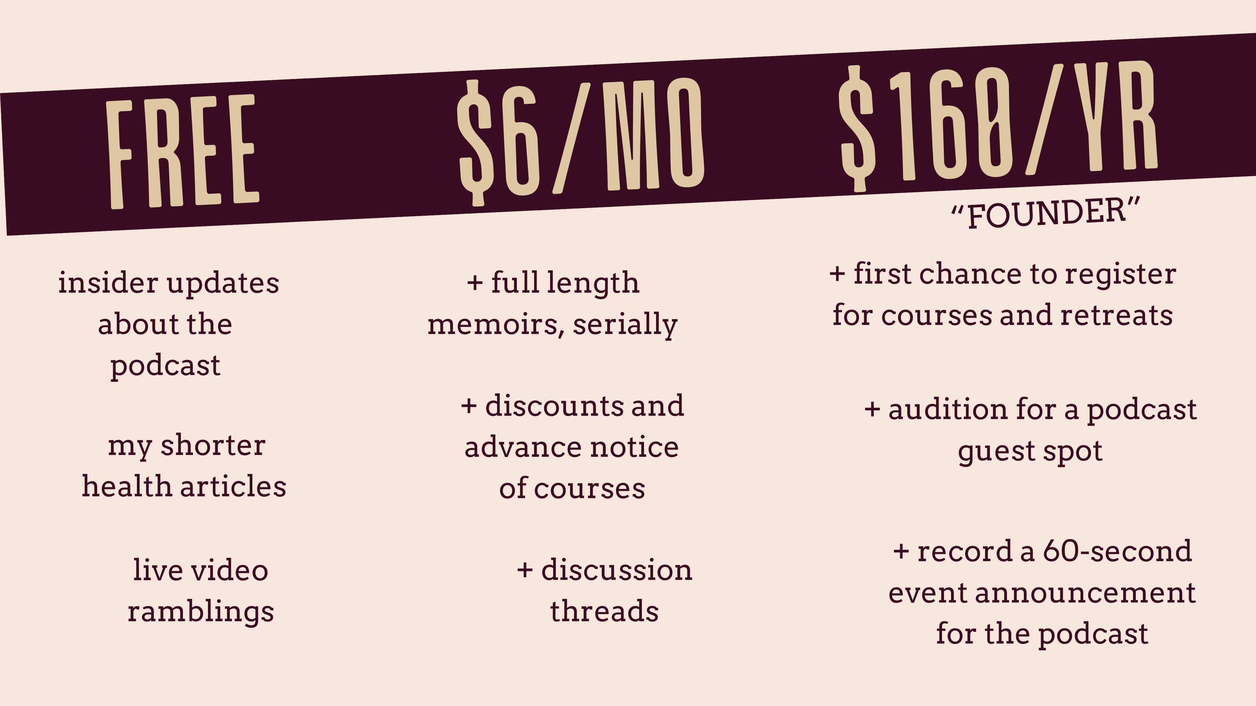 This is the community behind A Breast Cancer Diary, the book and the podcast. It’s a free newsletter where listeners and readers will find live videos and short stories as well as updates about my courses and West Coast retreats.
